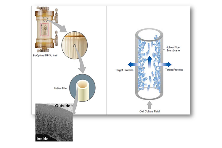Monoclonal Antibody (mAb) is one of the main focus categories in biopharmaceuticals. There are several types of cell culture systems such as fed-batch and perfusion culture. Although conventional batch systems are widely accepted in the current process, perfusion based cell culture systems offer the potential to greatly increase cell density and productivity for a long term periods. It is widely accepted that hollow fiber works as a cell separation device in perfusion culture.Specifications