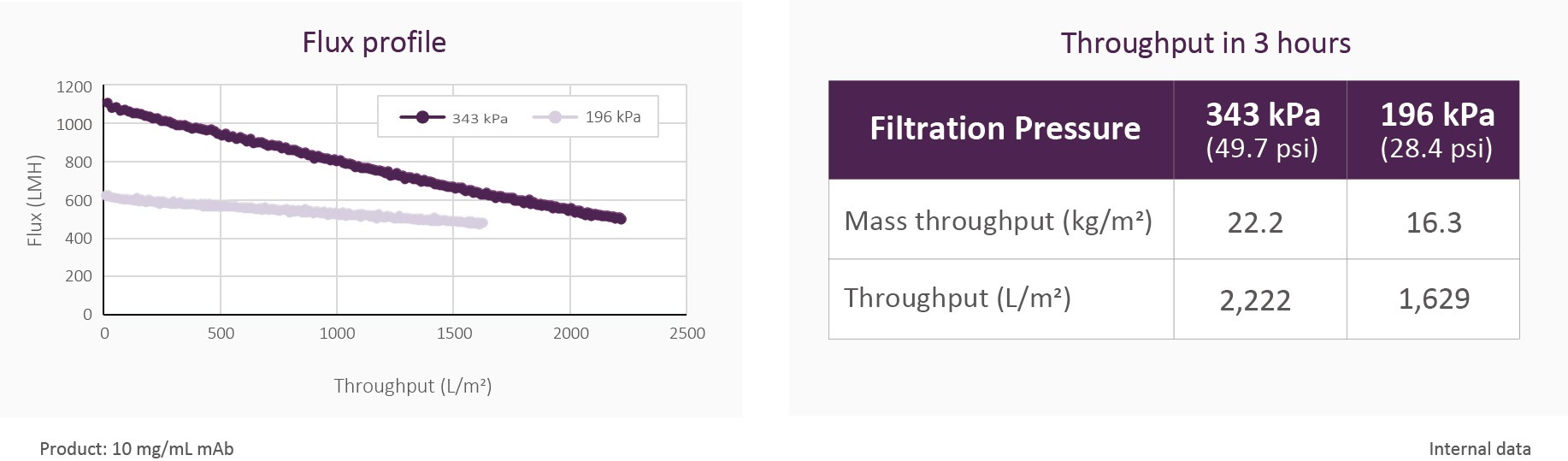 Planova FG1 showed >1,000 LMH initial flux at 343 kPa.