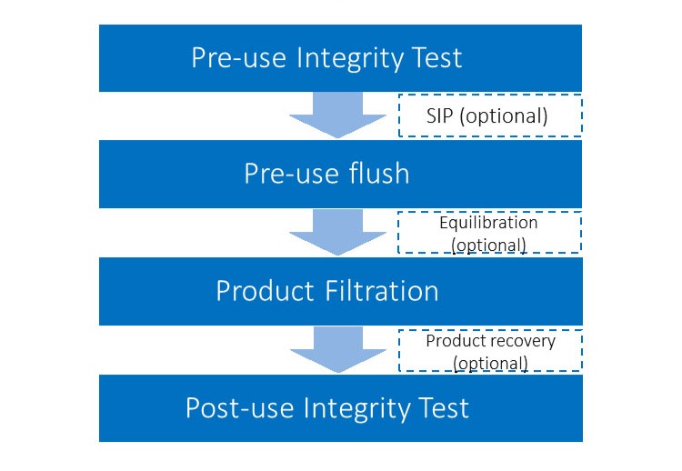 The leakage test is conducted pre-use and post-use to confirm that the filter is free from gross defects such as pinholes and other membrane damage.